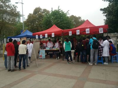 4月19日上午10点,威尼斯金沙欢乐娱人城爱心社联合南京中医药大学的从医志愿者们在南二、南三广场举办了免费为南邮的师生提供医疗咨询、义诊、猜谜送香囊的活动,为南邮的师生们送来了健康服务和人文关怀。