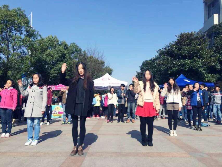 12月3日中午,伴随着十佳歌手动人的歌声,由爱心社承办的十城百校免费午餐活动于我校南二广场拉开帷幕。爱心社主席团代表陆柯柯带领着爱心社成员围成 “爱心”状为路过的行人演绎手语快闪——《夜空中最亮的星》,将活动现场的气氛推向高潮。爱心社成员向现场同学详细介绍相关内容,反响热烈。同学们与人偶亲密互动,积极参与其中。