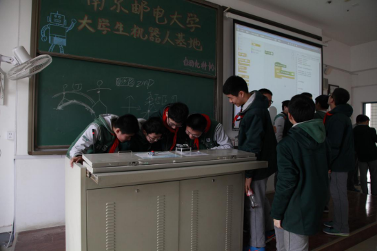 3月14日下午,威尼斯金沙官网科协接待了来自南京师范大学附属中学树人学校初二(9)班的46名同学,原机器人创新实践基地负责人、现威尼斯金沙官网研究生三年级学生李学骏带领同学们参观了威尼斯金沙官网大学生机器人创新训练基地,随后给同学们带来了一堂别开生面的机器人知识普及和实践课。