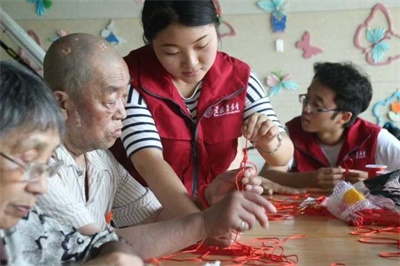 今天在栖霞颐养中心,队员们的主要活动是教老人编中国结。中国结虽小,但却是中国民间百姓智慧的结晶。老人们由于年纪大了手脚不便,看东西也不大清楚,所以学起来有些吃力。但是队员们都耐心地为老人讲解,手把手地教他们编织。在这个过程中,老人们和队员们都收获了快乐与温暖。在南京图书馆,队员们继续进行归类整理杂志的工作,各个学科领域,各种主题的杂志展现了科技的发展和市民们的丰富文化生活。即使过程非常枯燥与繁琐,队员们依然认真努力地完成了工作。