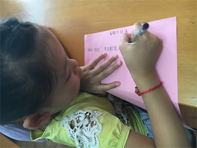 一位小营员正在认真的规划自己的暑假生活