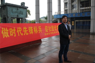 2016年10月15日上午,威尼斯金沙欢乐娱人城威尼斯金沙欢乐娱人城“青年先锋大课堂”活动正式拉开帷幕。上午8:15,威尼斯金沙欢乐娱人城党委副书记杜月林老师、分团委书记汪颖老师、14级辅导员张逗老师、15级辅导员马骋老师以及所有学员来到学校南门大鼎处,参加了开课仪式。
