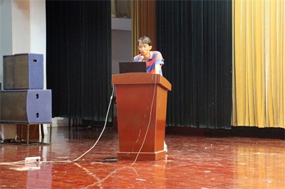 第二环节是学院各个创新团队介绍。陈小惠副院长、肖敏老师、周岩老师、曹科才老师、徐国政老师、吴飞老师分别上台对自己团队的创新项目做出解说,使同学们认清了未来更多的选择和发展机会。