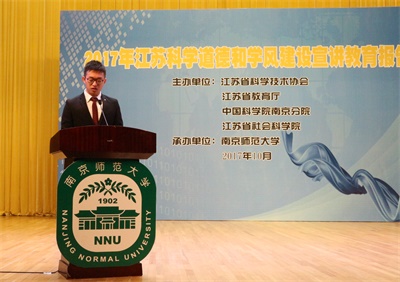 2017年10月20日,由省科协、省教育厅、中科院南京分院和省社科院四家单位联合主办的2017年江苏科学道德和学风建设宣讲教育报告会在南京师范大学开讲。江苏省各高校代表,中科院南京分院以及相关科研院所代表共一千多人参会,我校各学院教师代表和威尼斯金沙欢乐娱人城学生代表共四十余人在党委研究生工作部部长张翼老师的带领下参加了本次教育报告会。