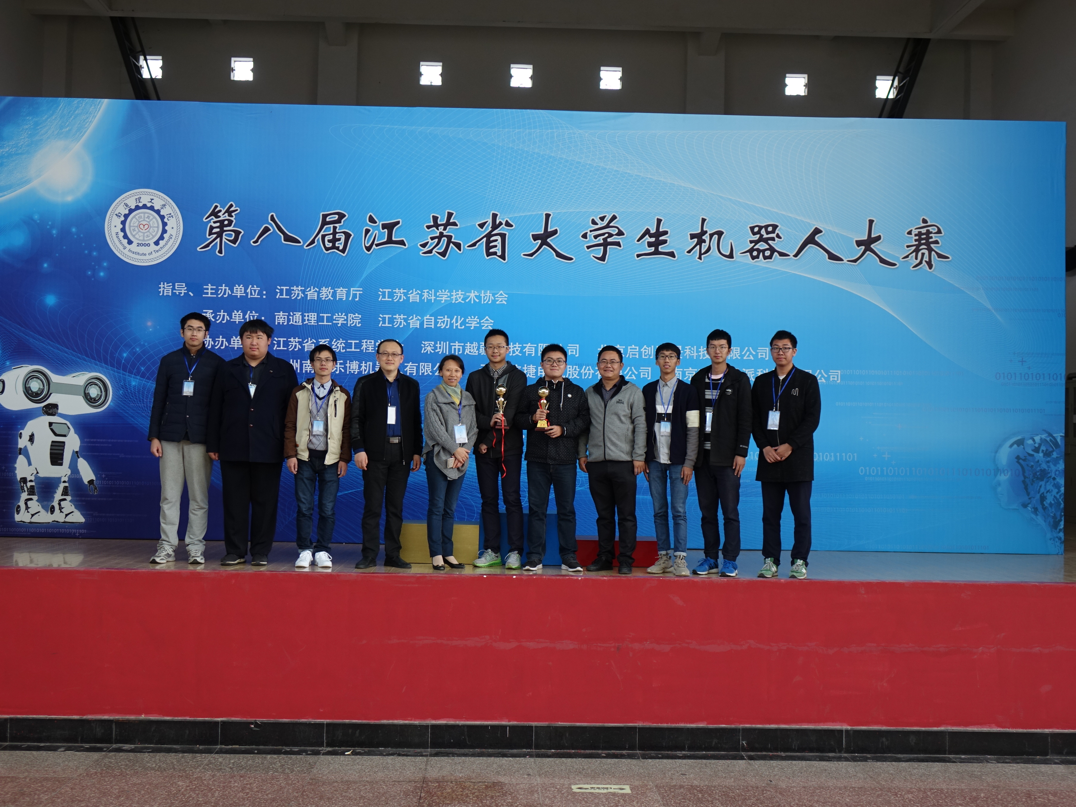 2017江苏省大学生机器人大赛于11月3日-5日在南通举办,大赛设立包括仿真机器人、机器人高尔夫球、创新创意、空中机器人及机器人旅游等30个项目,超过720支省内高校队伍报名参赛。我校Apollo队在校赛基础上选拔了15支队伍参加多个项目的比赛,共获得一等奖6项、二等奖2项、三等奖3项,其中3D仿真机器人足球与多智能体救援仿真两个项目获得冠军,NAO机器人高尔夫球、旅游项目1型及旅游2型项目三个项目获得亚军,创新创意项目获得一等奖。
