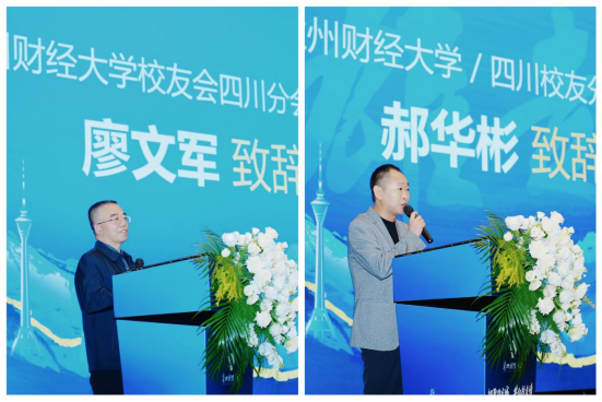 四川校友分会名誉会长、91级会计专业校友廖文军,四川校友分会会长、98级商经专业校友郝华彬分别向母校各位领导、校友表达最热烈的欢迎和最诚挚的问候,并全面介绍了四川校友分会发展历程、工作成效和未来规划等。
