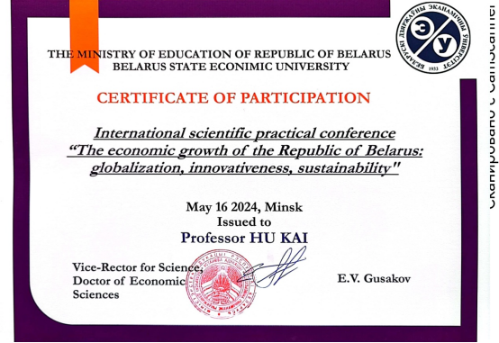 此次会议的举办是beat365与白俄罗斯国立经济大学落实年度学术会议合作机制的具体体现,进一步加强了beat365与“一带一路”合作院校的学术联系和合作交流。会后,白俄罗斯会议主办方向beat365发来了致谢和证书。